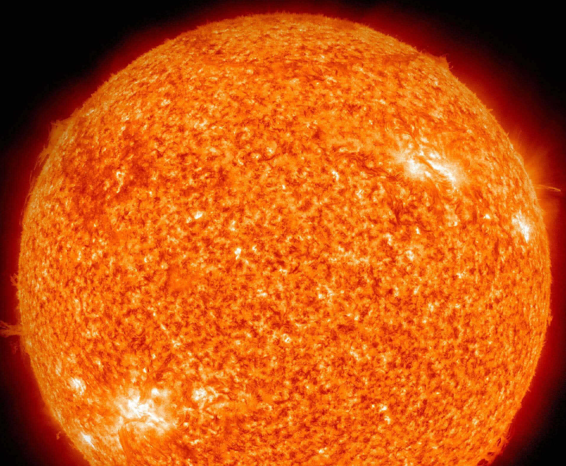La photosphère est le nom donné à la “surface” du Soleil. Elle est la première couche visible, les photons émis dans les couches internes du Soleil peuvent enfin s’échapper et parvenir jusqu’à nous. La température de surface du Soleil, de la photosphère, est d’environ 5500°C. Le Soleil est donc de type spectral G2, avec une lumière blanche légèrement teintée de jaune. Si le Soleil nous paraît si jaune dans le ciel, c’est parce que l’atmosphère terrestre filtre une partie de la lumière provenant du Soleil. En effet l’atmosphère terrestre absorbe et diffuse une partie des couleurs bleutées laissant ainsi le Soleil d’une couleur jaune. Ce phénomène est accentué lors du couché de Soleil. Il apparaît alors orange car la lumière du Soleil traverse une plus longue portion de l’atmosphère terrestre, supprimant ainsi quasiment tout le bleu du spectre lumineux du Soleil.